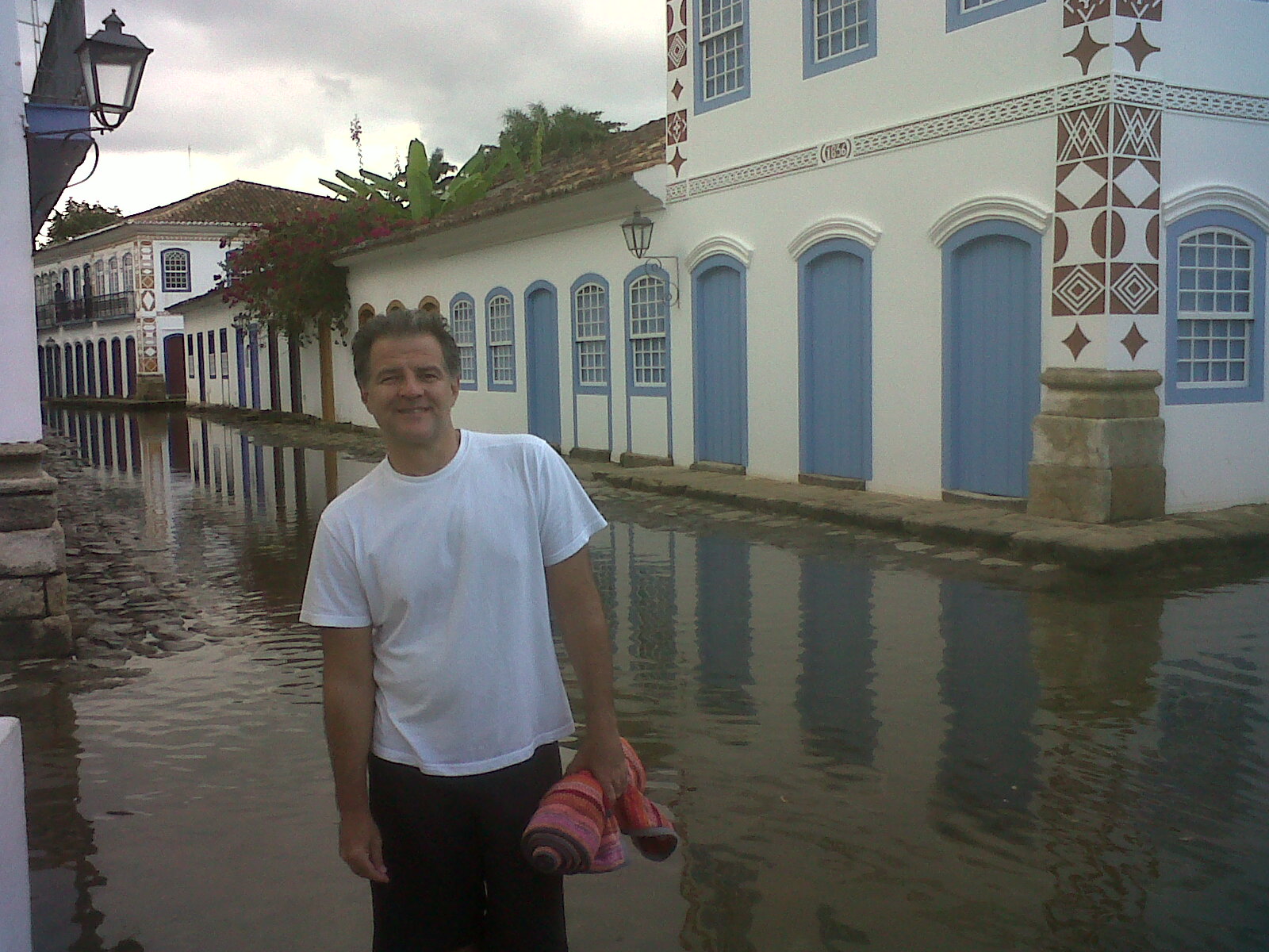Quando chegamos do passeio, ainda tinha um bônus! A cidade estava inundada. Adoro ver Paraty com as ruas perto do porto alagadas quando a maré sobe. Fica tão bonito, com o casario refletindo na água...